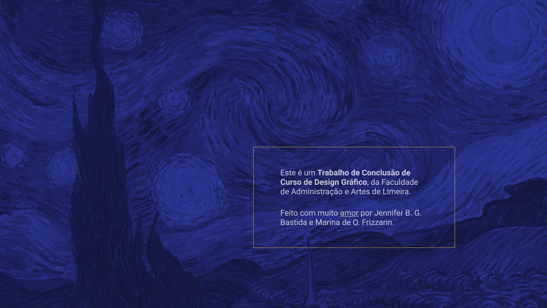 Este é o Trabalho de Conclusão de Curso de Design Gráfico, da Faculdade de Administração e Artes de Limeira, feito por Jennifer Bastida e Marina Frizzarin.